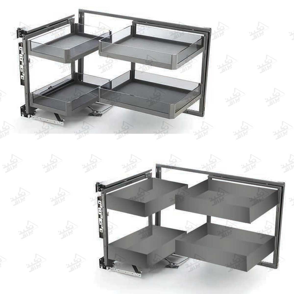 - دو سبد بیرونی هنگام باز شدن درب خارج میشوند و دو سبد داخلی در کابینت باقی میمانند