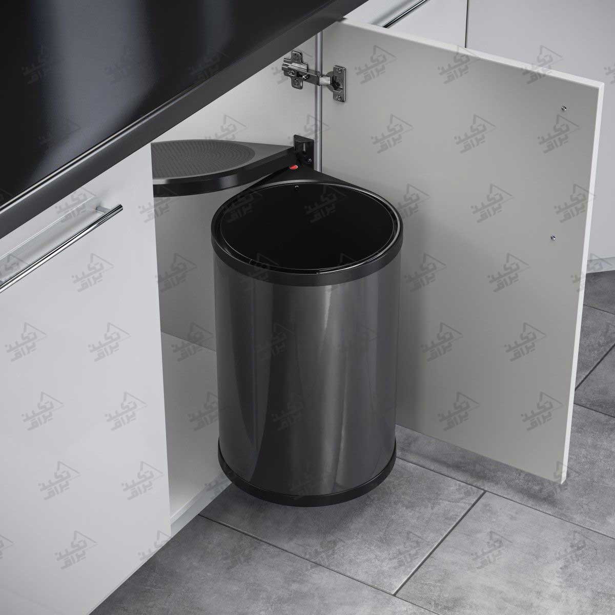 - با باز شدن درب کابینت، سطل به طور کامل به بیرون هدایت میشود و هنگام بسته شدن، به داخل کابینت برمیگردد و درب کابینت روی سطل قرار میگیرد.