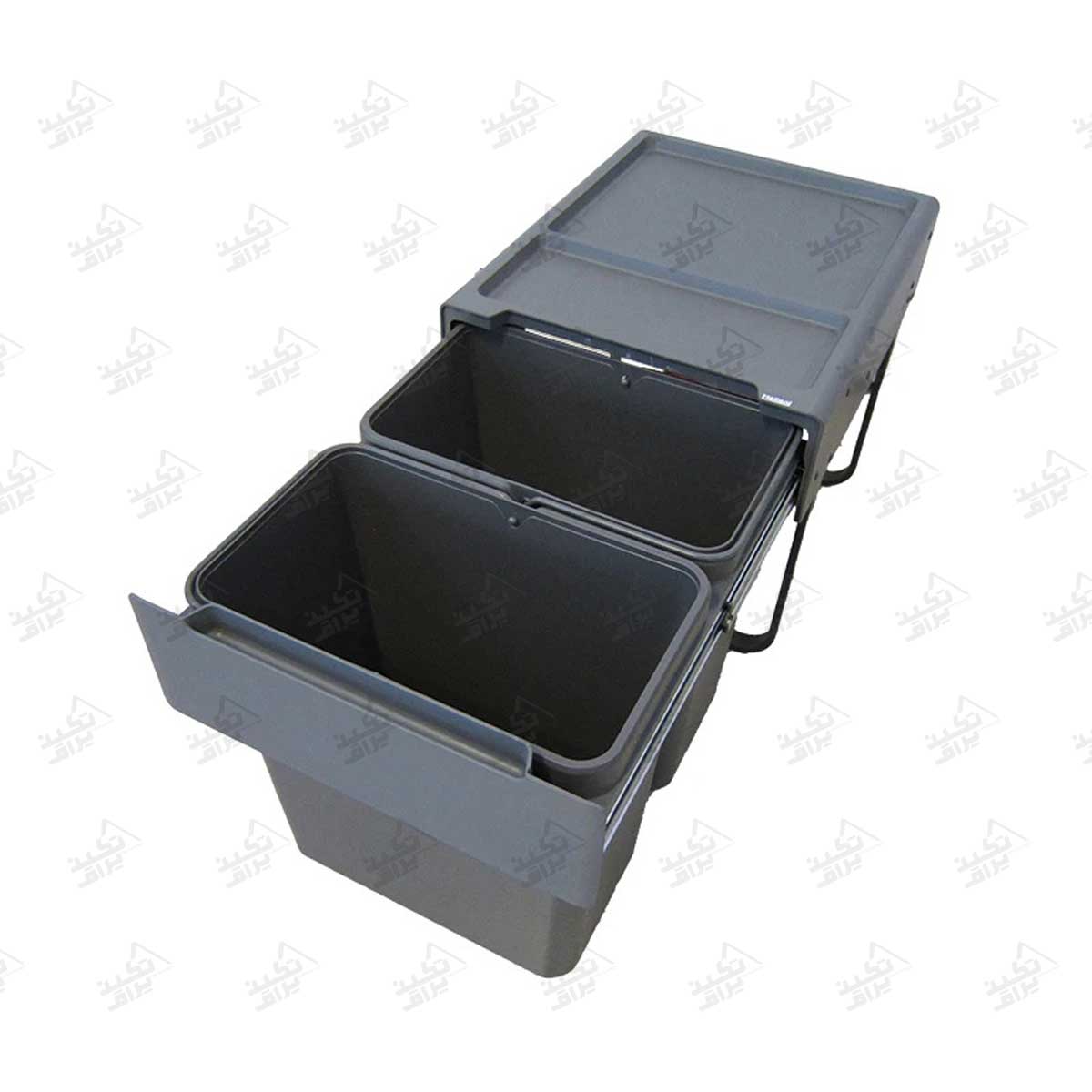 این سطل زباله داخل کابینتی ریلی دارای دو مخزن 18 لیتری است که در مجموع گنجایش 36 لیتر را فراهم میکند. همین موضوع باعث میشود بتوانید زبالههای خشک و تر را بهطور جداگانه تفکیک کرده و مدیریت پسماند را در آشپزخانه بهراحتی انجام دهید.
