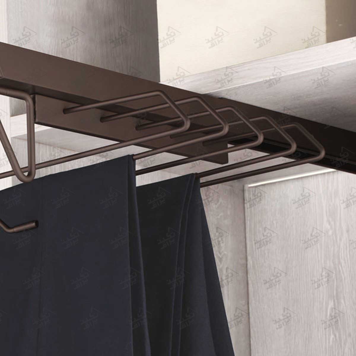 همچنین، ملونی این رگال را در مدل دو طرفه هم ارائه کرده است که در آن از دو طرف میتوانید شلوارها را داخل رگال قرار دهید یا بردارید. این مدل گزینهای عالی برای یونیتهای عریضتر و استفاده حداکثری از فضای داخلی کمد است.