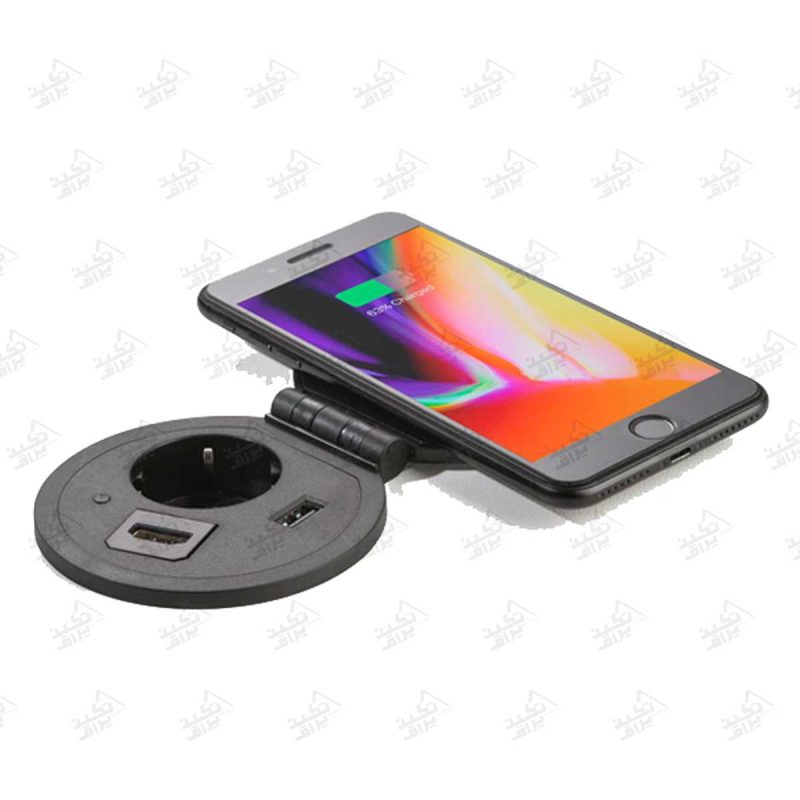 قابلیت شارژ بیسیم این پریز توکار گرد در قسمت درب آن تعبیه شده است؛ کافیست موبایل خود را روی درپوش آن قرار دهید تا بدون نیاز به سیم، فرآیند شارژ آغاز شود. حتما توجه داشته باشید که تلفن همراه شما باید قابلیت شارژ وایرلس را داشته باشد.