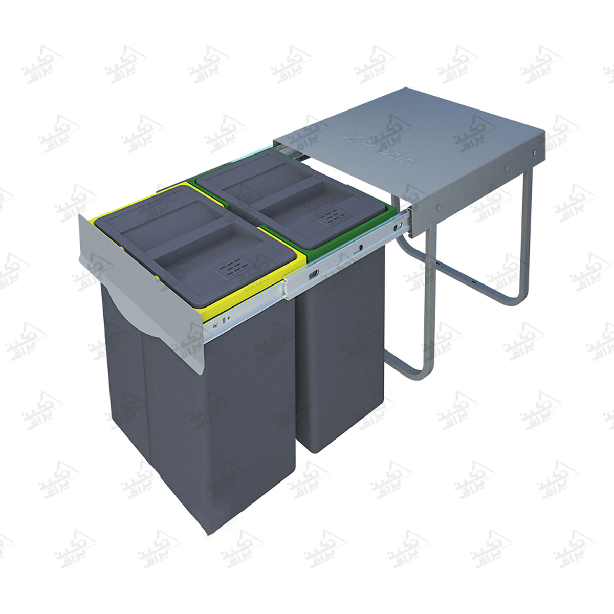 این سطل زباله دو مخزنه کابینتی، به صورت کشویی و با نصب به کف کابینت طراحی شده و قابلیت اتصال به درب را ندارد، بنابراین باز و بسته شدن آن کاملاً بهصورت دستی انجام میشود. سیستم حرکتی این سطل زباله کابینتی از ریل ساچمهای پهن سهتکه ساده می باشد که امکان حرکت نرم، روان و بیصدا را در هنگام بیرون کشیدن سطل فراهم میسازد. چنانچه می خواهید این سطل به صورت آرام بند بسته شود پیشنهاد ما به شما سطل زباله 8633 پلاتین است.