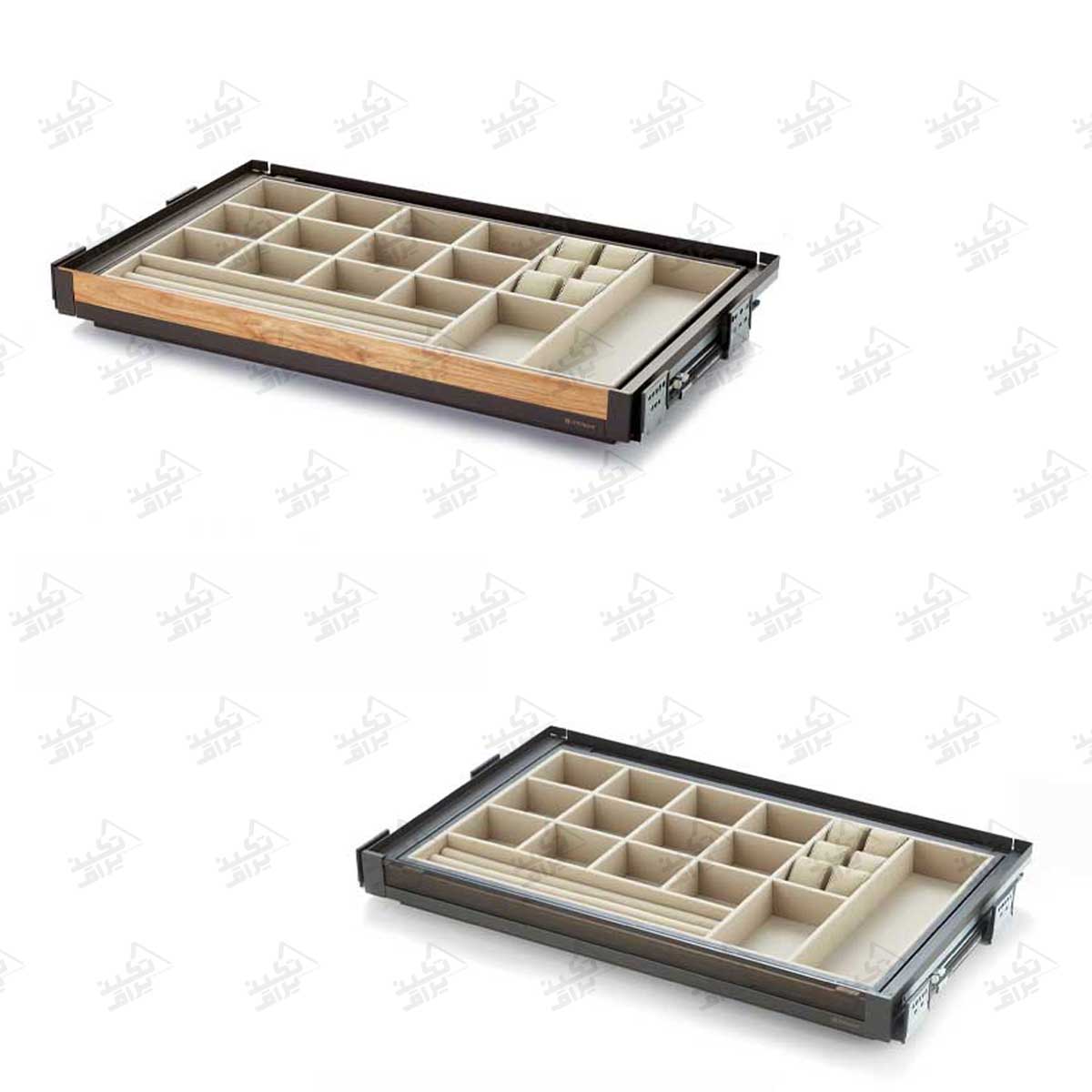 - فریم جلو شیشه که جلوهای مدرنتر و شفاف به کشو میدهد و امکان دیدن محتویات داخل را فراهم میکند.